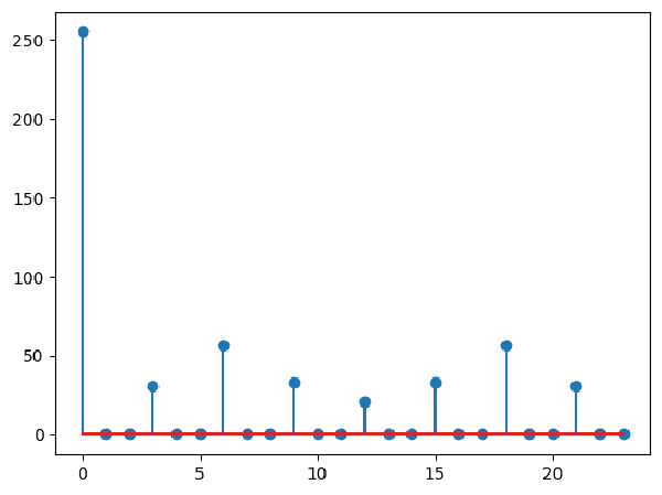 This figure shows magnitudes of Fourier Transform computed on the difference which shows the repeating pattern. You see how many zero-magnitude frequencies are there in the plot? I don’t know how Fourier Transform works, but it was a clear pattern when the difference has a repeating pattern.