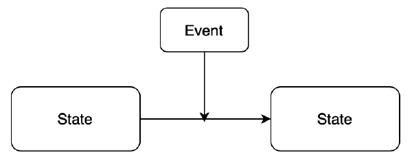 Event Sourcing에는 상태(state)와 이벤트(event)라는 개념이 있다. 상태는 이벤트를 만나 새로운 상태로 변화(transition)한다.