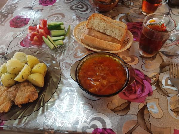 바이칼 투어의 또다른 별미는 호수 옆에서 먹는 점심이다. 투어 가이드 겸 버스기사님이신 아저씨가 생선요리를 해주신다. 내 입맛에 조금 짜긴 했지만 특이한 맛에 정말 맛있게 먹었다. 탕에 비슷한 국물요리인데, 이 요리로 입맛을 돋우고 빵과 감자로 배를 채우면 든든하게 밥 한끼가 된다.