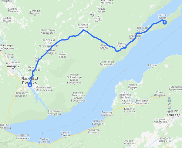 이르쿠츠크 버스 스테이션에서 바이칼 호수의 올혼섬까지는 대략 6시간이 걸렸다. 부산에서 동두천까지 차로 7시간정도 걸리니 대략 비슷한 느낌이다. 올혼섬은 바이칼 호수 가운데 있는 섬인데 바이칼 호수를 둘러볼 수 있는 가장 좋은 곳이다. 물론 올혼섬말고도 리스트비얀카같은 곳에서도 바이칼 호수를 둘러볼 수 있다. 하지만 바이칼 호수에 둘러쌓여 있는 올혼섬만큼 좋은 곳은 없을 것이다.